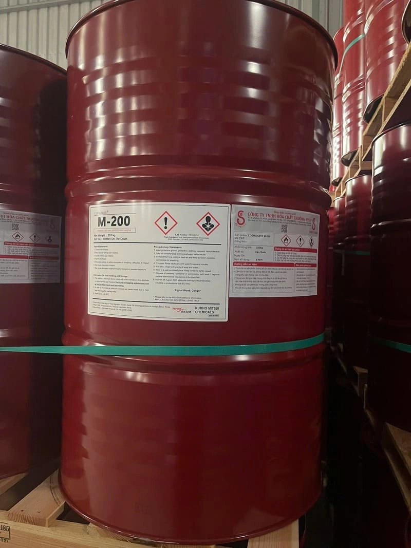 Isocyanate M-200, còn được biết đến như là hóa chất đóng rắn, là một thành phần quan trọng trong việc sản xuất bọt xốp Polyurethane (PU foam) khi kết hợp với Polyol. Hóa chất này có thể tạo ra các loại foam PU với độ cứng và độ mềm khác nhau tùy thuộc vào tỷ lệ phối trộn. M-200 bao gồm MDI (Diphenylmethane Diisocyanate) tinh khiết và MDI polymer hóa, mang đến độ ổn định và tính linh hoạt trong sản phẩm cuối cùng.